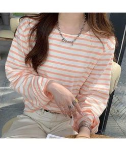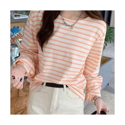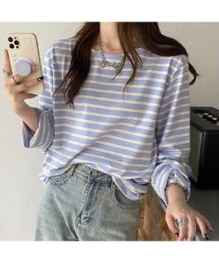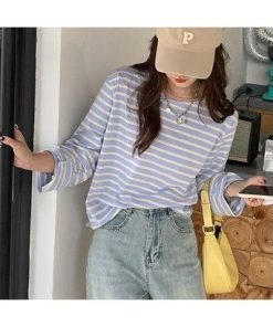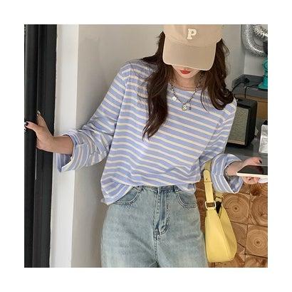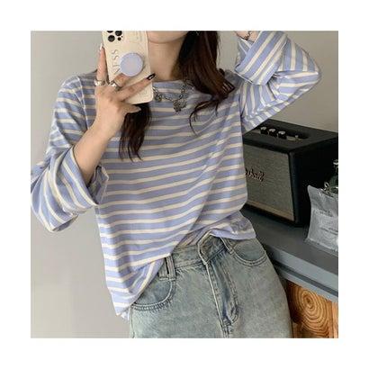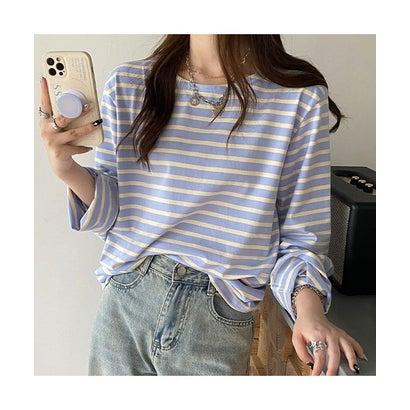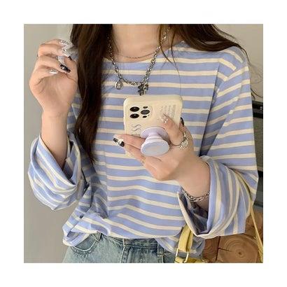 アドティエ ad thie ワイドスリーブ ボーダーロングTシャツ (ライトブルー)