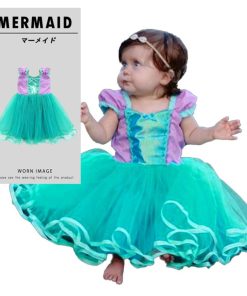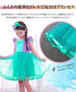 アリエル ドレス 子供 コスプレ 衣装 豪華4点 セット プリンセスドレス ,グローブ,ティアラ,ステッキ 90 100 110 120 130 CREDIBLE