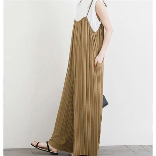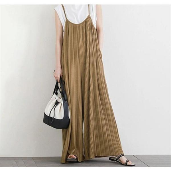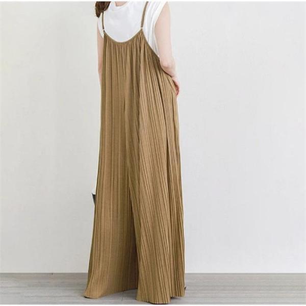 オールインワン リズデイズ サロペット レディース カットオフ セルフカット 裾カット 調節可能 アコーディオン プリーツ ワイドパンツ ボトムス パンツ