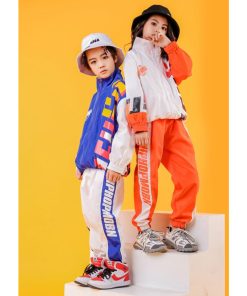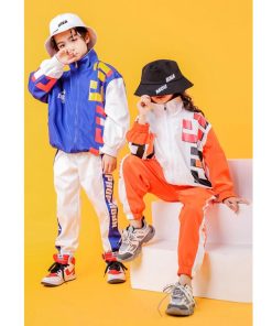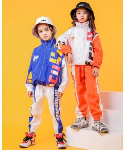 キッズ ダンス 衣装 ジャンケット パンツ ヒップホップ トップス 長袖 オレンジ ブルー ダンスウェア 子供 HIPHOP ストリートダンス ジュニア 男の子 女の子 秋