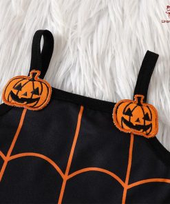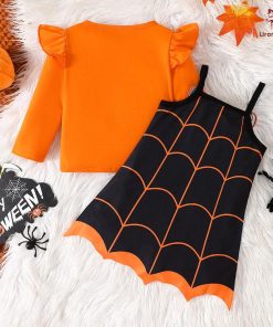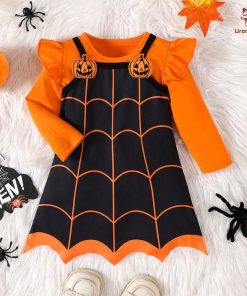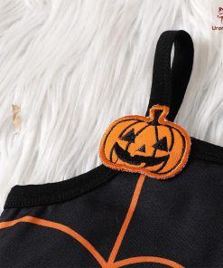ハロウィン 仮装 衣装 ベビー コスプレ 子供服 2点セット Tシャツ 長袖 かぼちゃ ワンピース 女の子 赤ちゃん オレンジ ブラック キッズ コスチューム クモ 小悪
