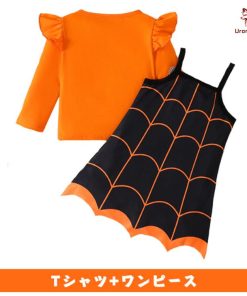 ハロウィン 仮装 衣装 ベビー コスプレ 子供服 2点セット Tシャツ 長袖 かぼちゃ ワンピース 女の子 赤ちゃん オレンジ ブラック キッズ コスチューム クモ 小悪