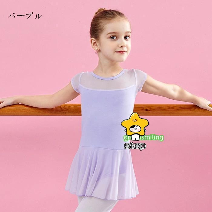 バレエレオタード 子供用 半袖 キッズ バレエ衣装 女の子 スナップボタン キッズウェア 体操 ダンス 練習服 ステージ衣装 シンプル ワンピース