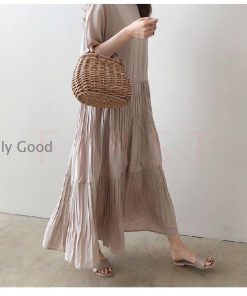 ワンピース レディース 春夏 半袖ワンピース 40代 キレイめ マキシワンピース 無地 プリーズスカート aライン 韓国風 ゆったり オシャレ 上品 着痩せ