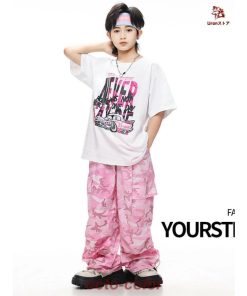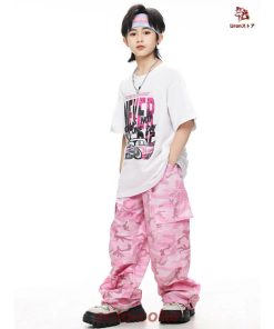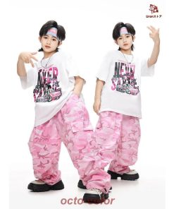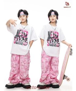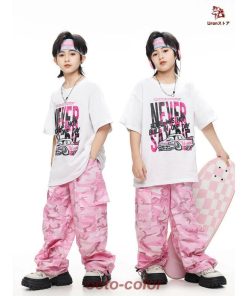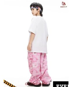 白 Tシャツ 迷彩 ピンク カーゴパンツ キッズ ダンス衣装 セットアップ 上下セット おしゃれ 女の子 男の子 子供 かっこいい かわいい 半袖 トップス カジュアル