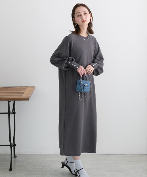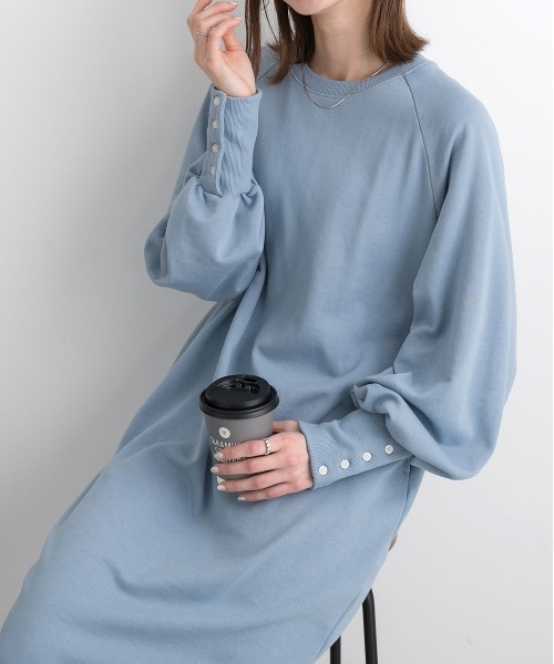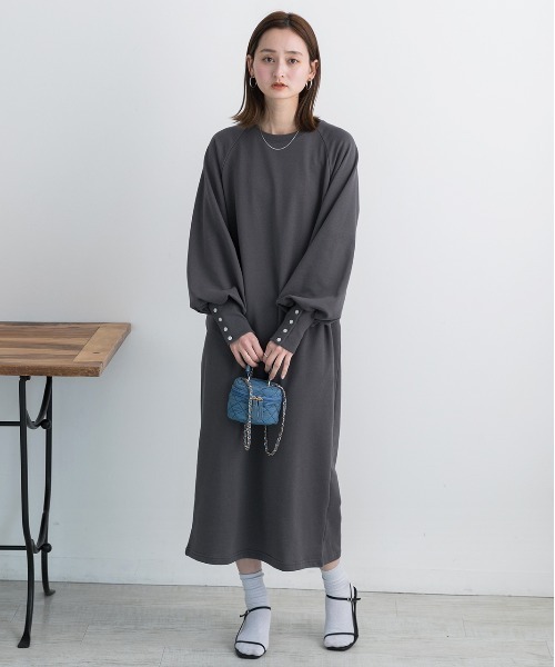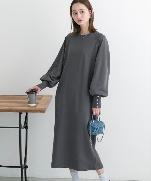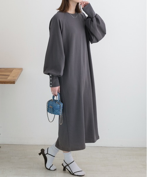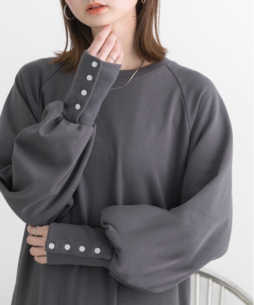 商品名:ボタンデザイン ボリュームスリーブワンピース