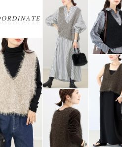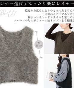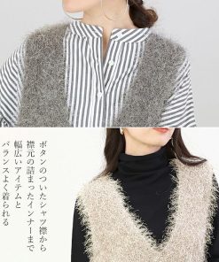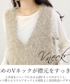 Aletta vita ベスト ニット Vネック 深V フェザー レイヤード 重ね着 ダンスフェザー 艶 伸縮 30代 40代 レディース フェザーヤーンVネックニットベスト メール便不可