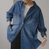 ANGIE ブラウス シャツ オーバーサイズ バンドカラー デニムシャツ レディース
