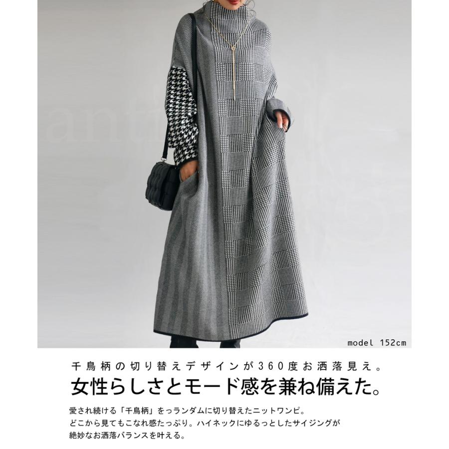【検索ワード】ニットワンピース ワンピース レディース ロング 長袖 千鳥柄 切り替え 千鳥格子 ヘリンボーン アシンメトリー アシメ ボトルネック ハイネック ニット ニットワンピ きれいめ 柄ワンピ 柄 もっちり ハイゲージ マシュマロタッチ チクチクしない ゆったり 総柄 ロングワンピ ワンピ 着痩せ 細見え 体型カバー 楽ちん 大きめ 大きいサイズ ポケット付き antiqua アンティカ 大人 おしゃれ 10代 20代 30代 40代 50代 60代 秋 冬 お洒落 カジュアル かわいい かっこいい あんてぃか