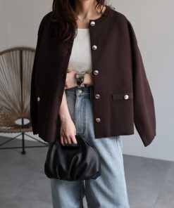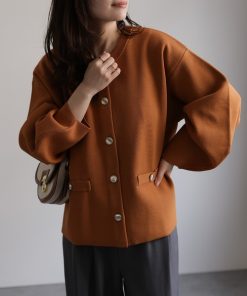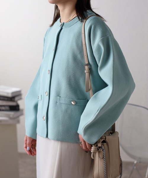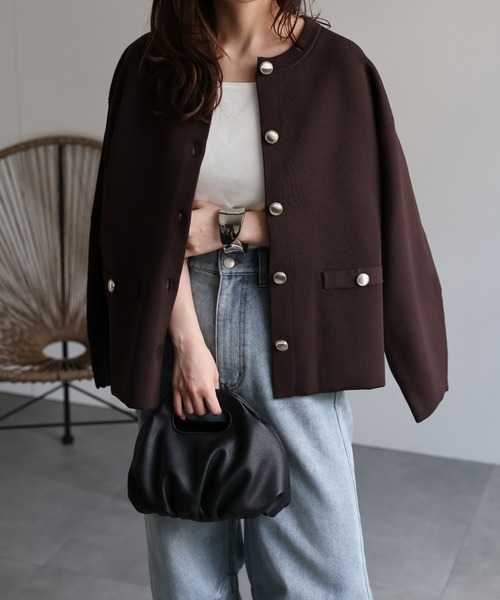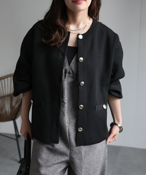 ap retro ジャケット ノーカラージャケット メタルボタンニットカーディガン / ニットジャケット レディース