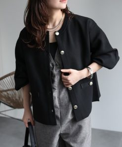 キーワード:ジャケット ノーカラージャケット レディース 無地 オケージョン オフィスカジュアル キレイめ ビジネス 秋 大人カジュアル 旅行