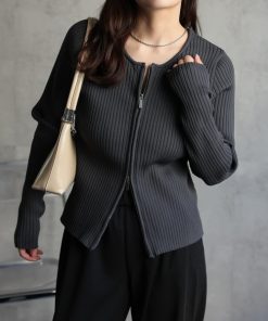 ap retro ニット セーター Wジップリブニットカーディガン レディース
