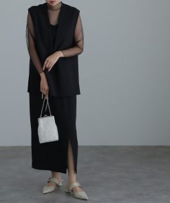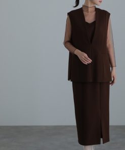 素材:ワンピース表地…ポリエステル92% ポリウレタン8% 裏地…ポリエステル100% 袖…ナイロン100% ジレ表地…ポリエステル92% ポリウレタン8% 裏地…ポリエステル100%