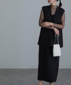 商品名:ミモレ丈&袖ありフォーマルジレ付きセレモニー結婚式 パーティードレス 同窓会オケージョンドレスワンピースお呼ばれ 二次会 成人式 謝恩会 20代 30代