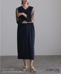 Vネックストレートシルエットワンピース【436222238】