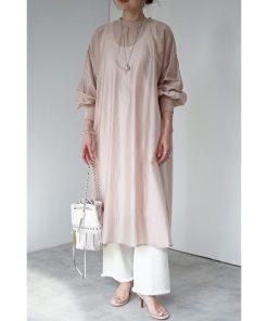 キーワード:ワンピース ミモレ丈 長袖 無地