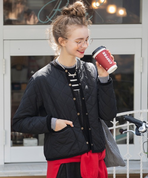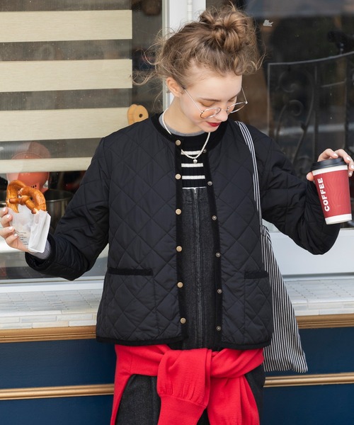 キーワード:ジャケット ノーカラージャケット レディース キルティング ショート丈 無地 ZOZO限定 デート トラッド ピクニック レジャー フェミニン フレンチカジュアル 秋 定番 旅行