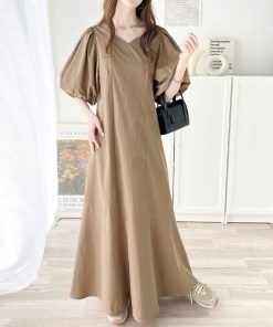 キーワード:ワンピース フレア ロング 七分袖 五分袖 無地