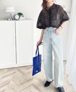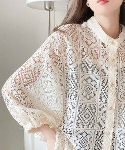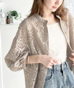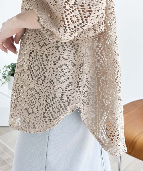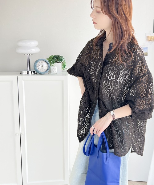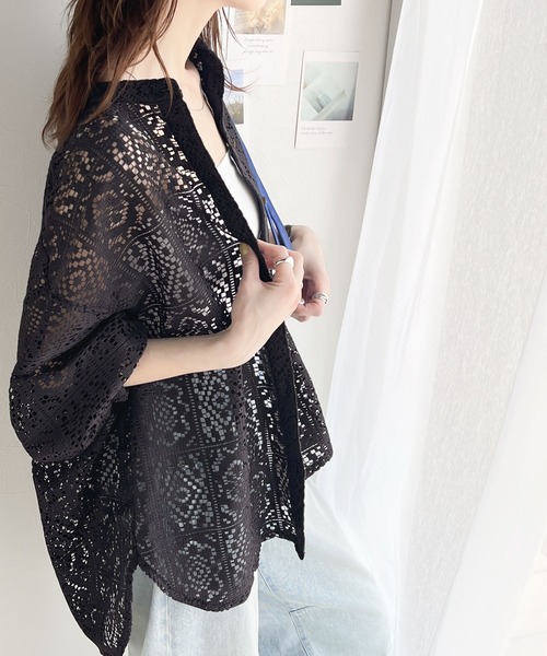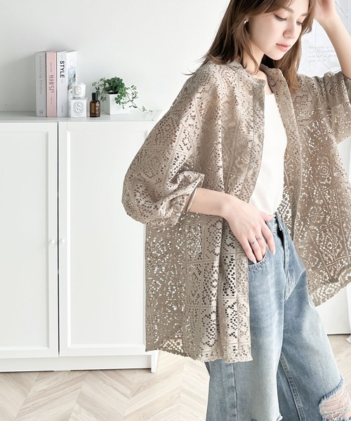 キーワード:ブラウス シャツ レディース スタンドカラー レース 七分袖 五分袖 夏 春