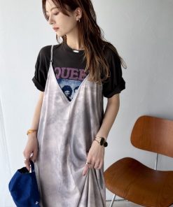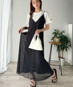 classicalelf ワンピース そよ風シフォン♪ふわり柔らかシルエットで“涼”を着回す。前後2wayチュールレイヤードロングキャミワンピース(ブラック&マーブル柄)