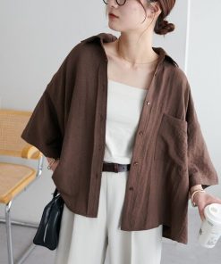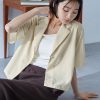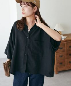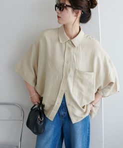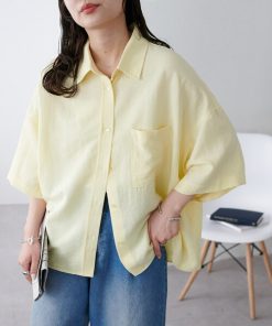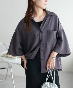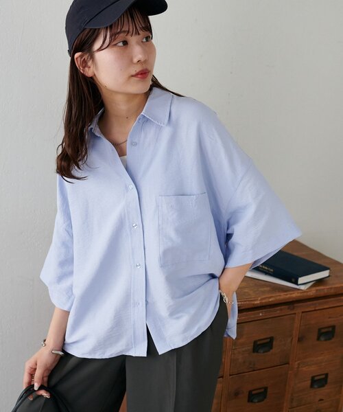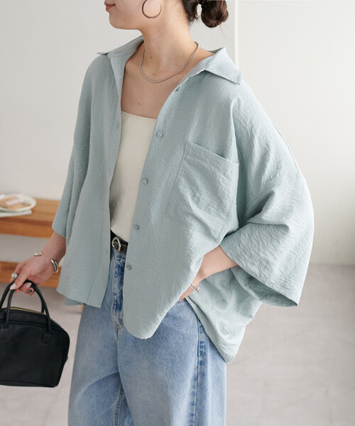 キーワード:ブラウス シャツ レディース ショート丈 七分袖 五分袖 無地