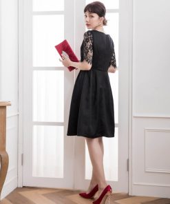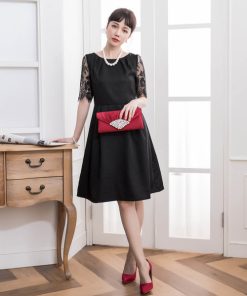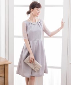 キーワード:ドレス フレア レース 半袖 膝丈 無地