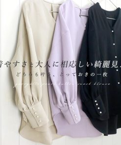 キーワード:ブラウス シャツ レディース レギュラーカラー 長袖 無地