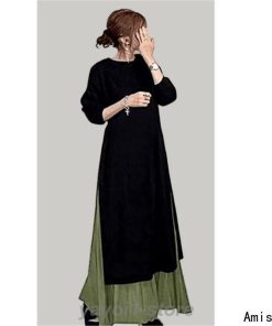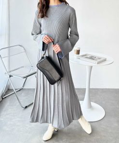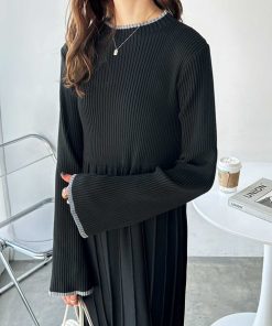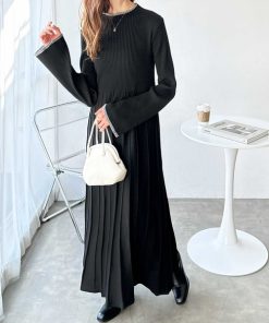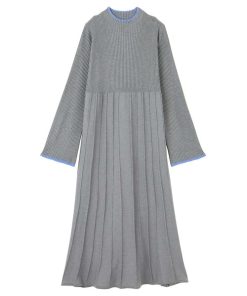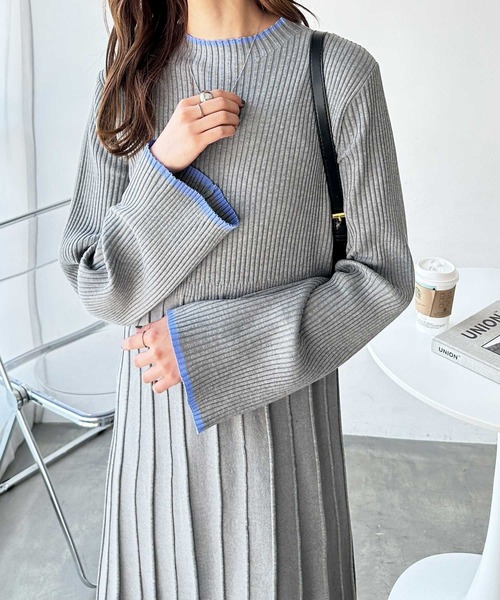 参考商品名:配色デザインフィット&フレアーニットワンピース