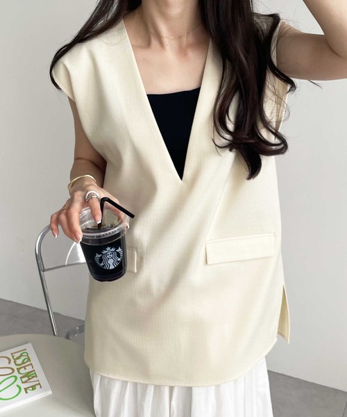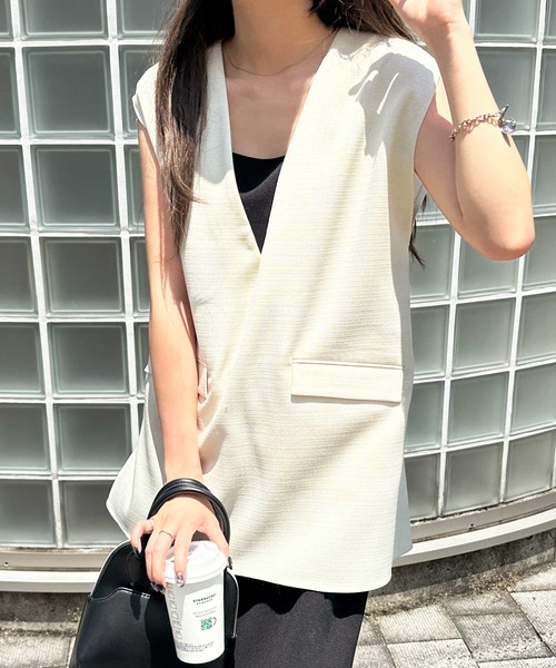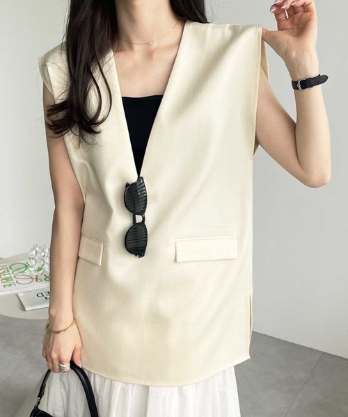 キーワード:ベスト ジレ レディース ノースリーブ 無地