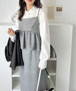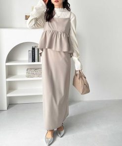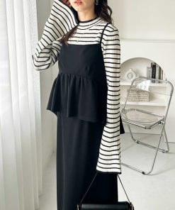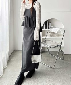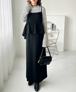 商品名:【新色追加/S-LL展開】 1枚で旬スタイルが完成!細見えペプラムキャミワンピース