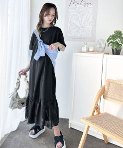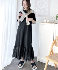 参考商品名:【JaVa ジャバコラボ】トレンドスタイル即完成!レイヤード風チュールコンビTシャツワンピース