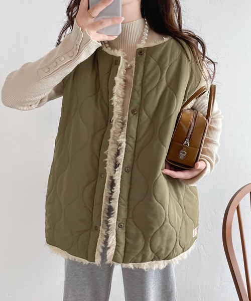 参考商品名:《JaVa ジャバコラボ》ふっくら&あったか♪2way中綿キルティング×ファーリバーシブルベスト