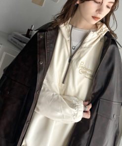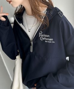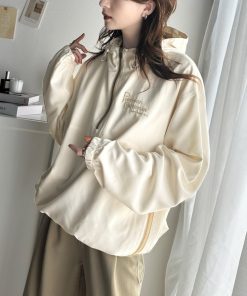商品名:《Javaジャバコラボ》トレンド感をプラス。胸元刺繍配色ハーフジップアノラックパーカー
