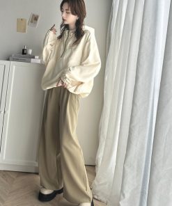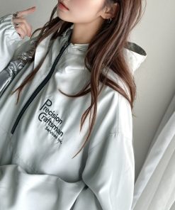 キーワード:ブルゾン アウター レディース ジップ ナイロン フード ロゴ ワンポイント 無地 WEB限定 ストリート スポーティー 公園 紅葉 秋 春 大人カジュアル 定番 旅行