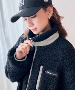 Java ブルゾン アウター 「JaVa ジャバコラボ」レトロ×スポーツMIX。JaVaワッペン付き配色ボアブルゾン レディース