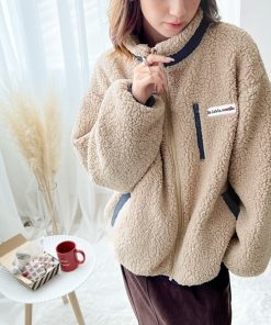 商品名:《JaVa ジャバコラボ》レトロ×スポーツMIX。JaVaワッペン付き配色ボアブルゾン