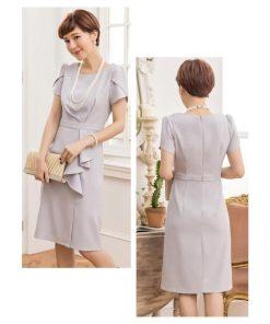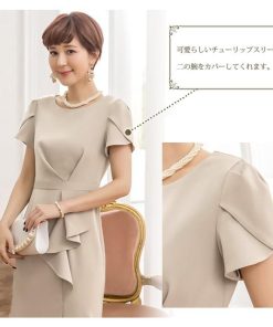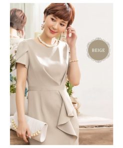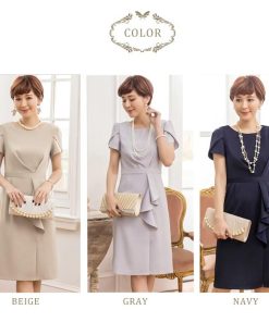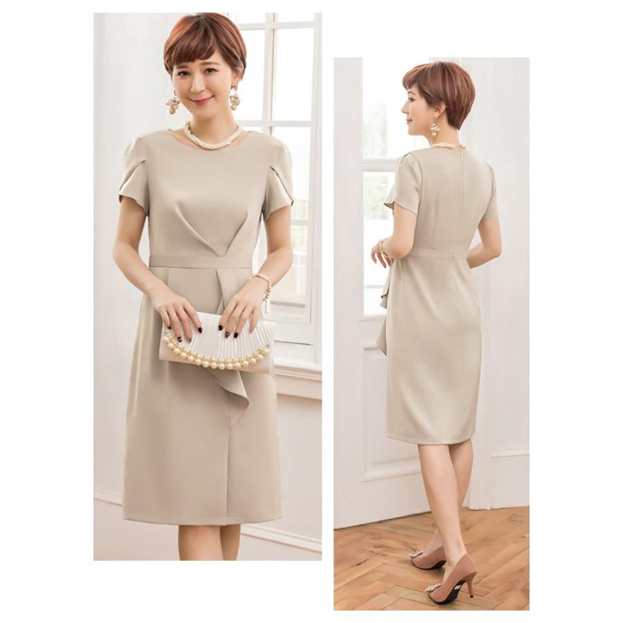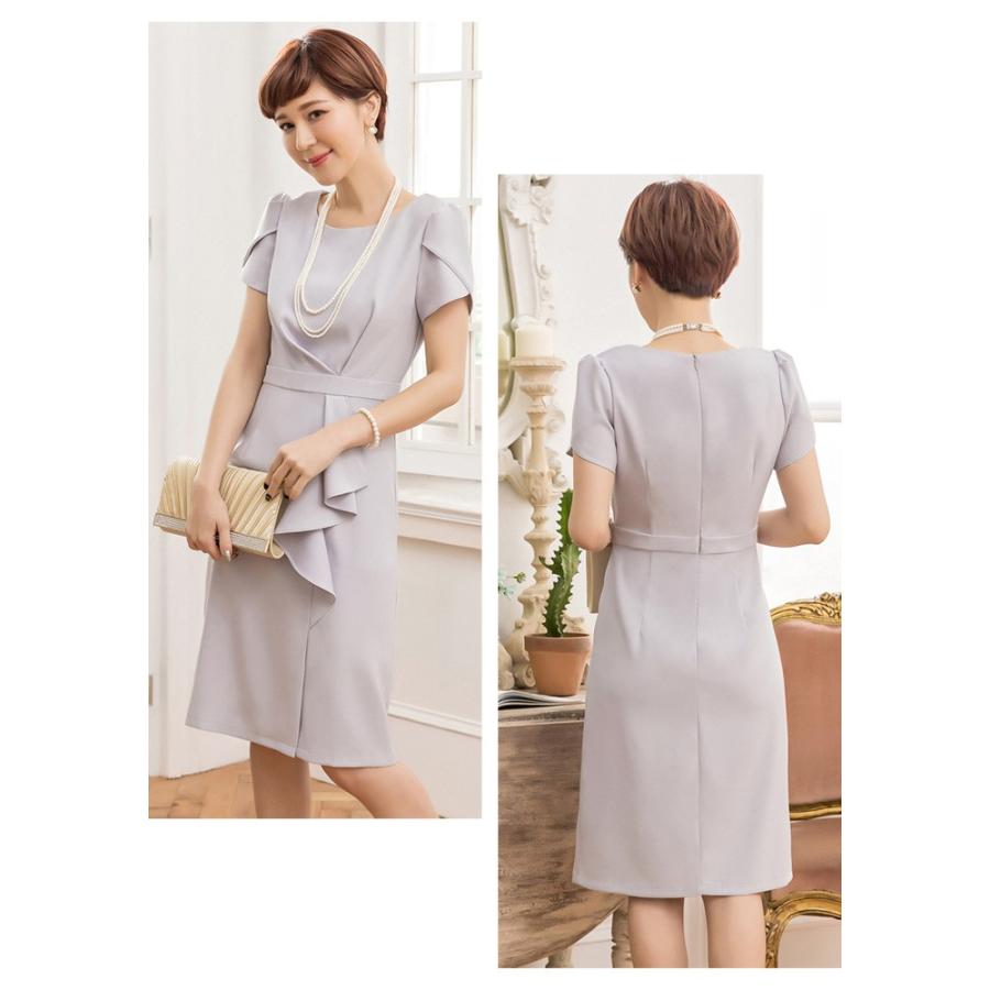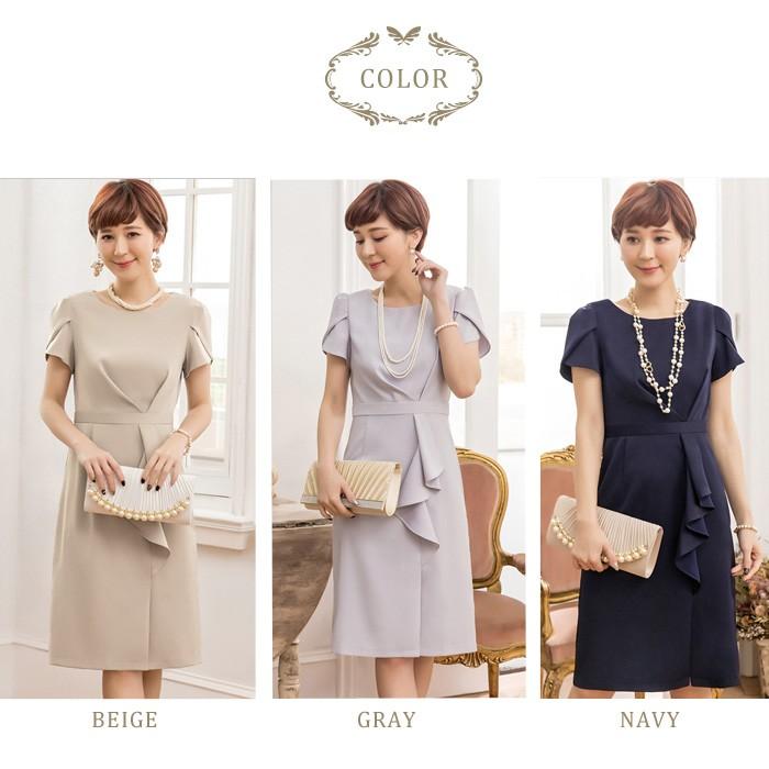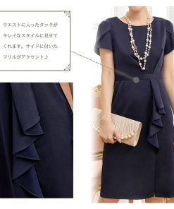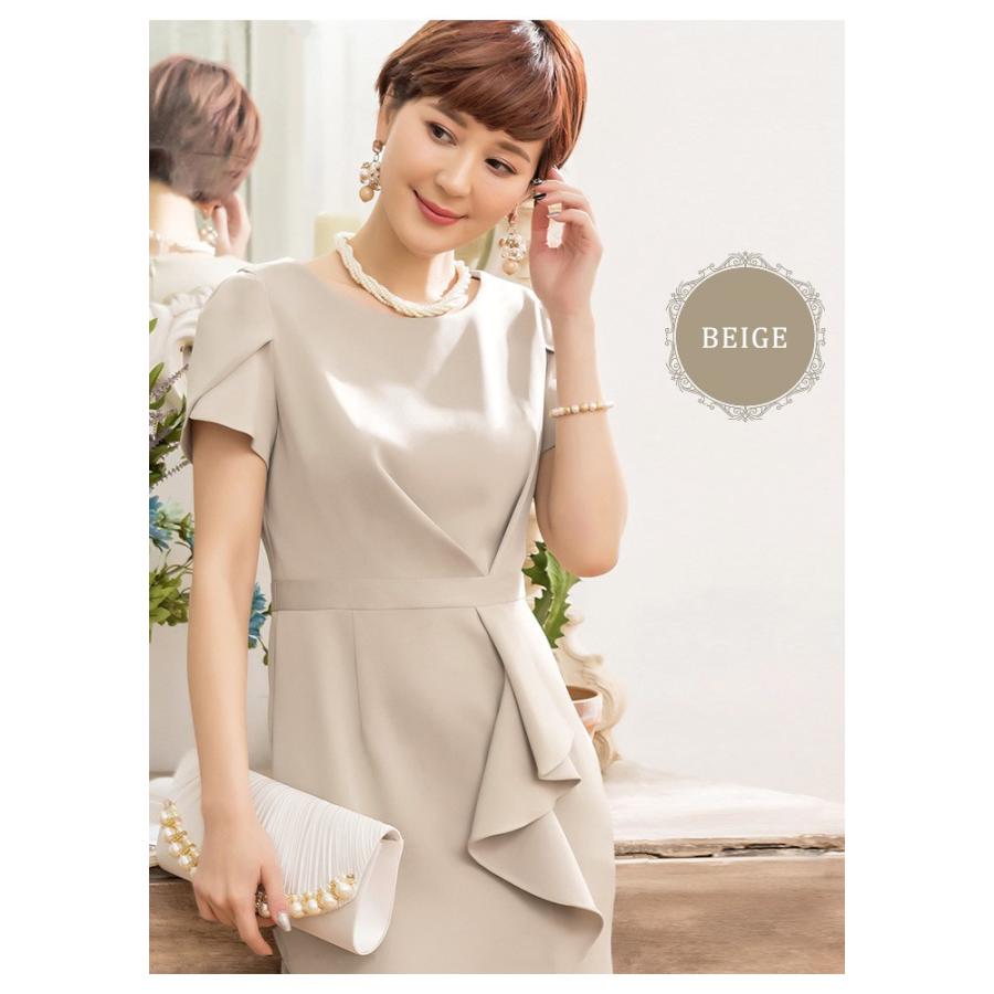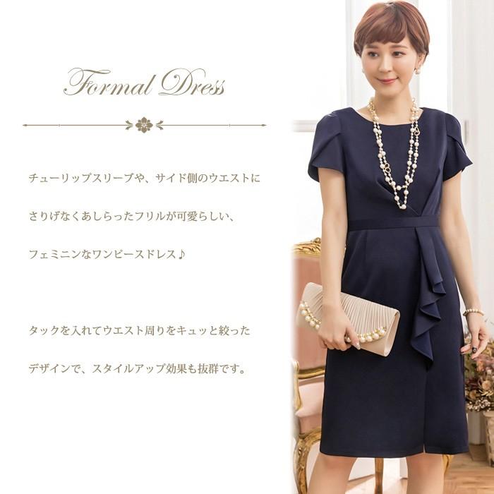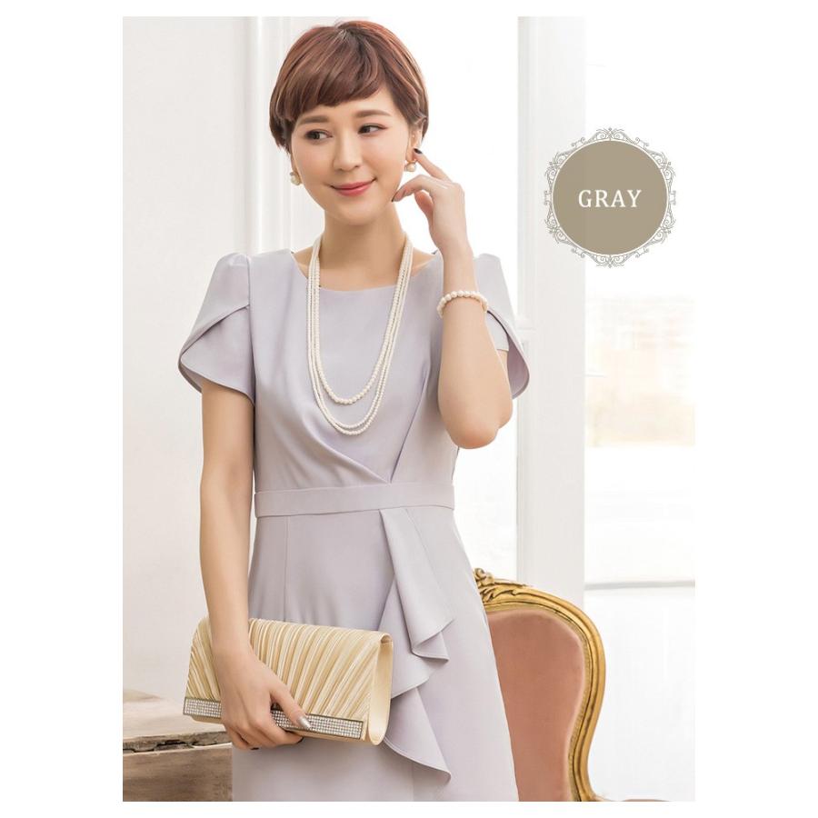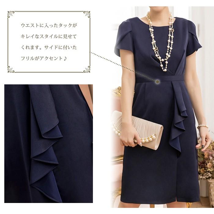 KOEISTORE パーティードレス レディース 結婚式 ワンピドレス 半袖 ワンピース 大人 フリル ママ 母 ミディアム ネイビー 結婚式ドレス 20代 30代 40代 S M L 送料無料