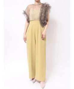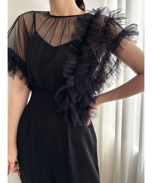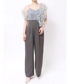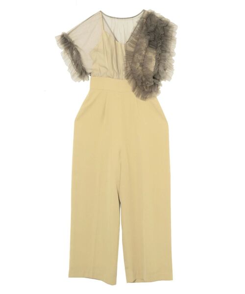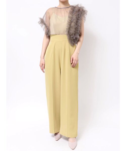 キーワード:パンツドレス ストレート フリル ワイドパンツ 半袖 無地 WEB限定 オケージョン キレイめ フェミニン ベーシック 夏 結婚式 結婚式二次会