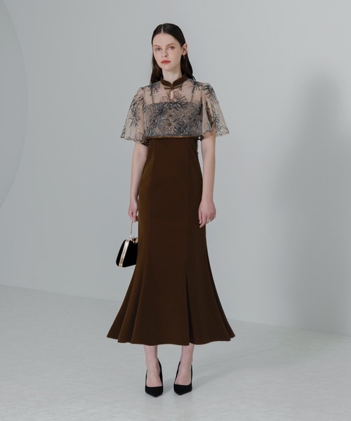 キーワード:ドレス フレア レース ロング 花柄 刺繍 半袖 無地 キレイめ デート フェミニン 結婚式二次会 成人式 大人カジュアル