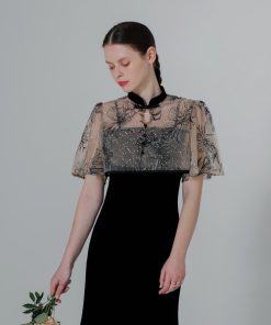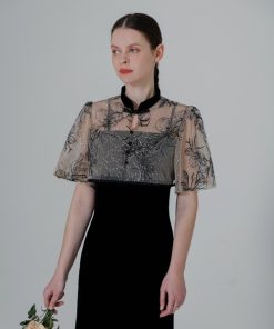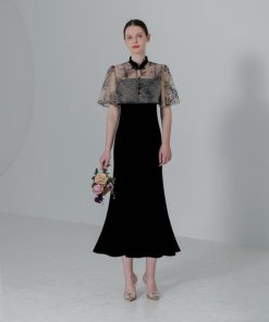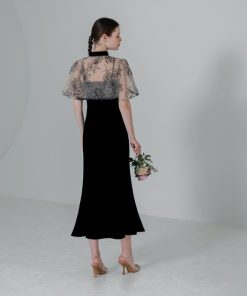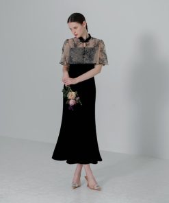 商品名:【LEJA】配色パイピング花柄刺繍ボレロ付きベロアマーメイドキャミワンピースドレス 2点セット美脚効果 結婚式 パーティードレス 成人式 二次会 同窓会 お呼ばれ オケージョン 20代 30代