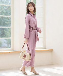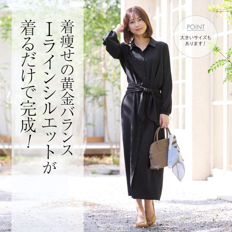 mimigrant シャツワンピース ロング丈長袖 春夏秋 30代 40代 50代 60代 上品 無地 opsw9-050001 きれいめ レディース 着やせ 大きいサイズ