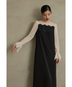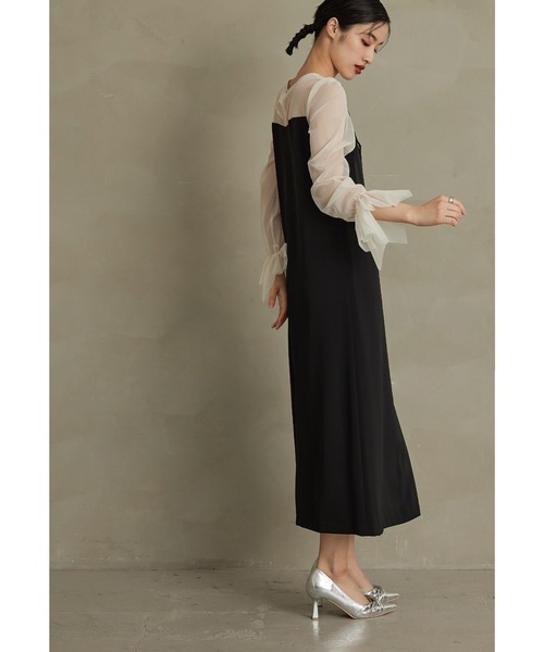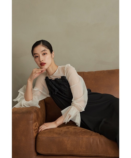 キーワード:ドレス ロング 台形 長袖 無地 エレガント オケージョン キレイめ 結婚式二次会 成人式