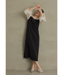 商品名:ケミカルレース変形ベルスリーブIラインドレス 結婚式 成人式 同窓会 パーティードレス オケージョンドレス お呼ばれワンピース
