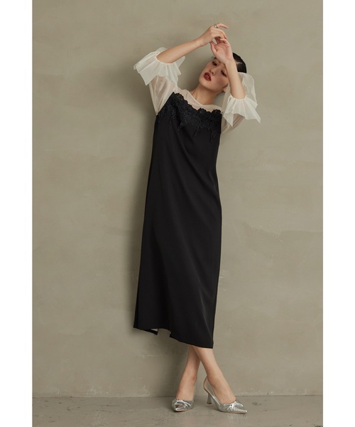 niana ドレス ケミカルレース変形ベルスリーブIラインドレス 結婚式 成人式 同窓会 パーティードレス オケージョンドレス お呼ばれワンピース