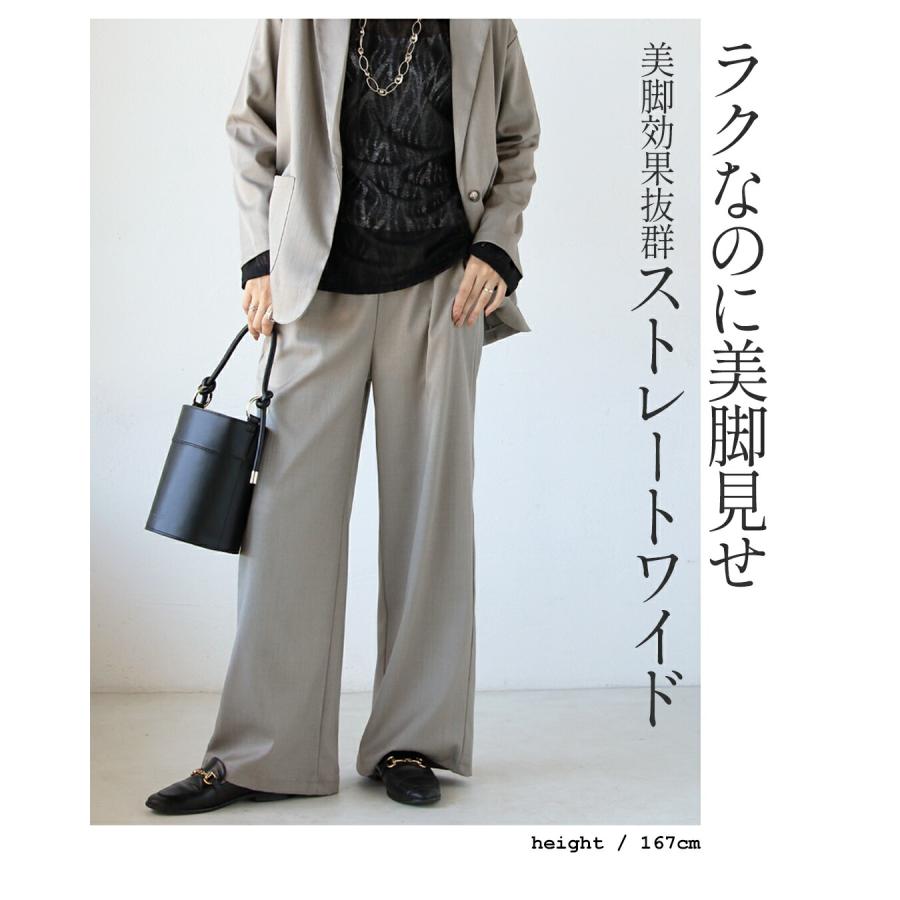 セットアップ スーツ パンツ ジャケット 着るだけできちんと見え 万能セットアップ テーラードジャケット ストレートパンツ ワイドパンツ グレージュ 春 秋 オフィス 仕事 通勤 セミフォーマル【set】