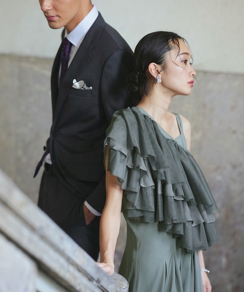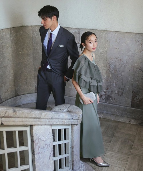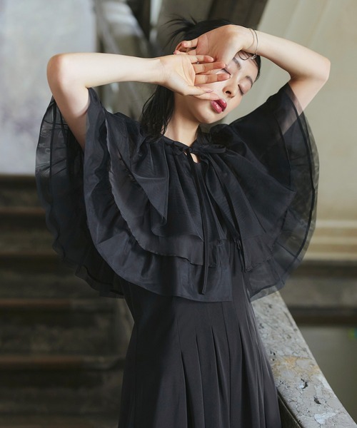 RUIRUE BOUTIQUE パンツドレス オケージョンドレス 結婚式 マルチway | レイヤードシアーケープ&フレア セットアップ パーティードレス ワンピー