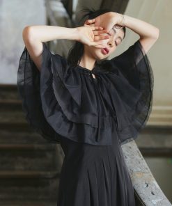 素材:【ケープ】チュール地: ポリエステル100%, オーガンジー地: ポリエステル100%, 【パンツドレス】表地: ポリエステル98%, ポリウレタン2%, 裏地: ポリエステル100%