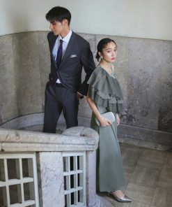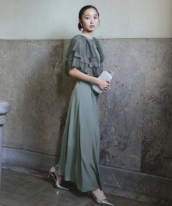 商品名:オケージョンドレス 結婚式 マルチway | レイヤードシアーケープ&フレア パンツドレス セットアップ | パーティードレス ワンピース ドレス フォーマル オケージョン 美脚効果