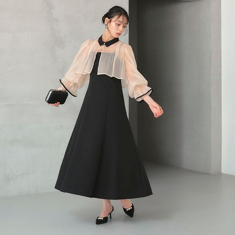 RUIRUE BOUTIQUE レディース パーティードレス 2点セット 結婚式 キャミワンピ シアー 大きいサイズ お呼ばれ オケージョン 二次会 披露宴 フォーマル 長袖 かわいい ストレッチ