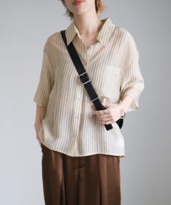 キーワード:ブラウス シャツ レディース ショート丈 ストライプ レギュラーカラー 半袖